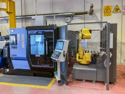 La DVF 5000 de DN Solutions combine une conception compacte avec un usinage 5 axes polyvalent. En association avec le système d’automatisation RoboTrex, elle permet un processus de production efficace avec changement automatisé des dispositifs de serrage, offrant une productivité accrue et une meilleure rentabilité.