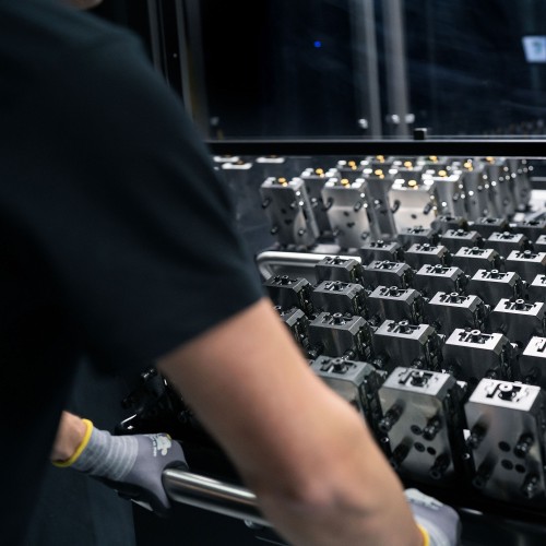 La CV5-500 de Mazak incarne un usinage 5 axes compact avec une grande dynamique et une excellente accessibilité de la zone de travail. En combinaison avec RoboTrex, elle permet un processus efficace dans lequel les étaux prééquipés sont changés automatiquement et les temps improductifs sont systématiquement réduits.
